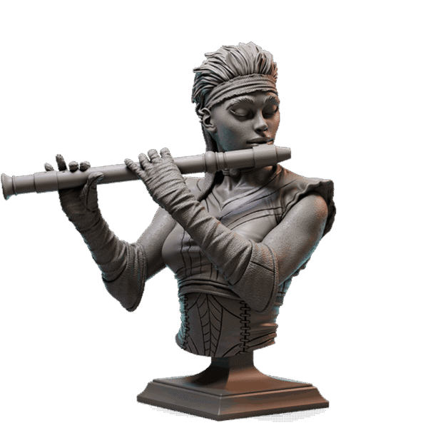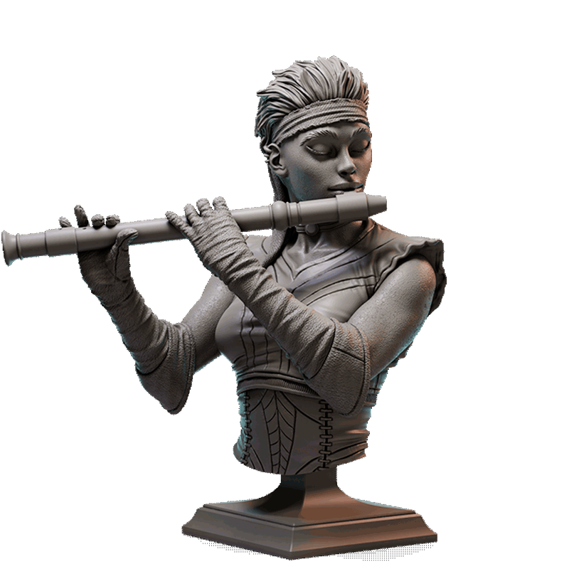 Um busto detalhado que capta o espírito talentoso e inspirador da heroína Natasha Blaine. Esta miniatura de busto foca na parte superior de seu corpo, com seu rosto em uma expressão de concentração e serenidade. Ela segura sua flauta, pronta para tocar uma melodia que pode mudar o rumo de uma batalha. Sua armadura leve de couro é finamente detalhada, e seus cabelos longos e soltos adicionam um toque de dinamismo. Perfeito para servir como uma peça de exibição ou uma representação em uma campanha de RPG, o busto de Natasha Blaine é uma adição imponente e inspiradora à coleção Orconspiracy.