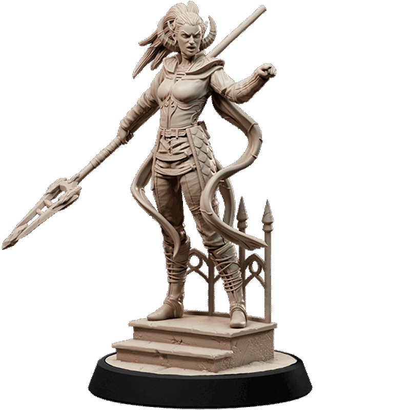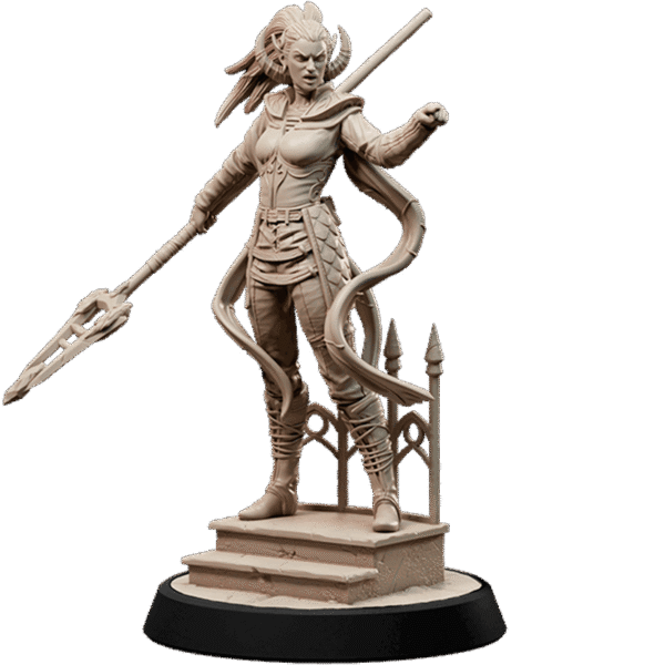 “Com uma pose de desafio e uma lança pronta para o combate, Cormah Shasan é uma figura de determinação e graça, uma das maiores heroínas de Panshaw. Esta miniatura detalhada retrata uma guerreira esbelta, porém poderosa, com chifres sutis que se projetam de sua cabeça, sugerindo uma herança única ou uma conexão com forças arcanas. Seus cabelos estão presos em um estilo prático para a batalha, e ela veste uma armadura leve, mas resistente, com detalhes ornamentados no peito e nos braços, combinando proteção com agilidade. Ela se apoia sobre uma estrutura de pedra detalhada, que pode ser uma gárgula ou uma parte de uma arquitetura antiga, adicionando um toque de cenário. Perfeita para liderar o ataque contra as forças vampíricas de Count Zegrath, Cormah Shasan é uma adição essencial à coleção “Vampires in Panshaw”, pronta para enfrentar os horrores que se erguem da escuridão.”