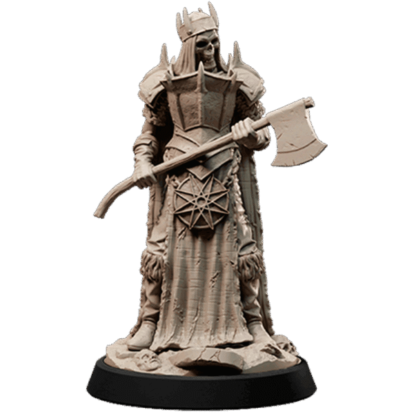 “Uma figura macabra de poder e terror, o Skeleton Executioner é o arauto da morte que se ergue nas fileiras da Wightpocalypse. Esta miniatura detalhada ostenta uma armadura pesada e uma coroa que denota sua autoridade sombria, enquanto empunha um machado imponente, pronto para desferir golpes letais. Um símbolo enigmático adorna sua vestimenta esfarrapada, sugerindo uma ligação profunda com a magia vil que reanima os mortos. O Executor Esqueleto é a personificação da brutalidade implacável, uma força imparável que busca extinguir toda a vida em Panshaw. Uma adição formidável para qualquer exército de mortos-vivos, ideal para confrontos épicos e para testar a coragem dos heróis.
