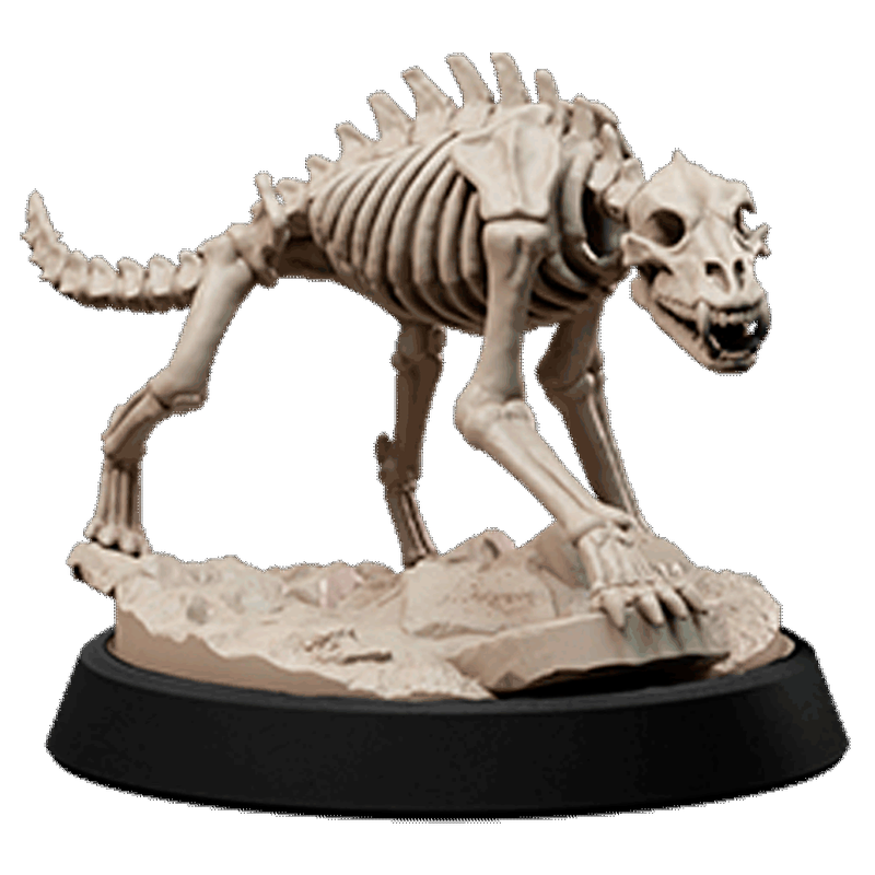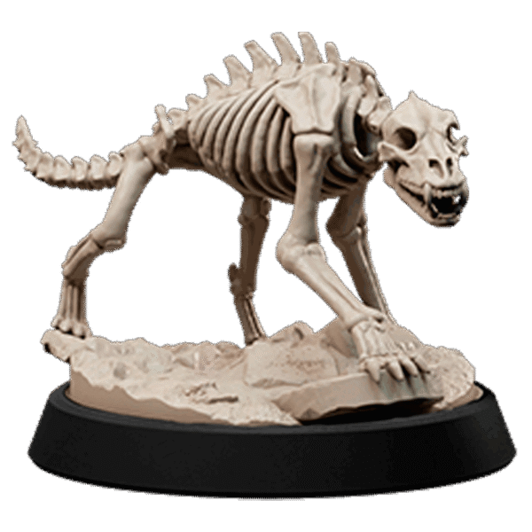 “Um predador das sombras reanimado, o Skeleton Wolf é um terror ágil que persegue suas presas na Wightpocalypse. Esta miniatura detalhada captura a estrutura óssea completa de um lobo, com seus ossos expostos e um crânio canino que parece rosnar silenciosamente. Com uma postura rastejante e músculos invisíveis impulsionando-o para a frente, este lobo esquelético é perfeito para emboscadas rápidas, para flanquear aventureiros desavisados ou para adicionar um elemento de perseguição assustadora. Um lembrete de que nem mesmo a vida selvagem está a salvo da magia vil que assola Panshaw, o Skeleton Wolf é um inimigo implacável e persistente.