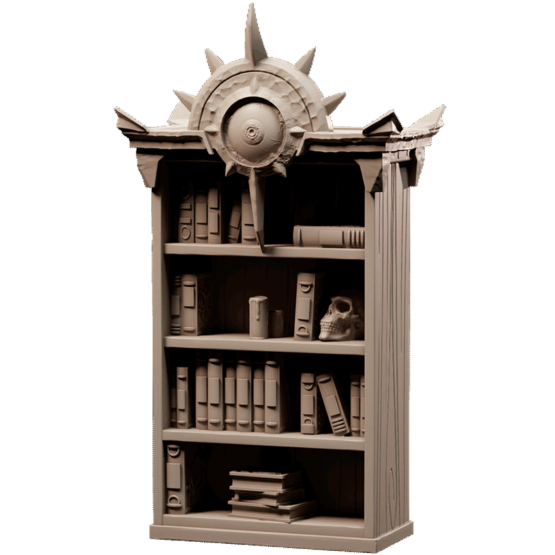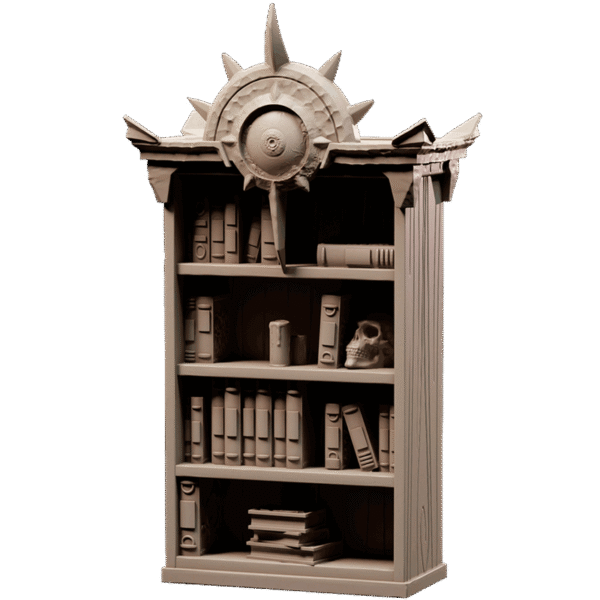 “Repleta de tomos antigos e grimórios proibidos, a Bookshelf é um portal para o conhecimento (e a loucura) do Mago Louco. Esta miniatura detalhada apresenta uma estante de livros robusta, com prateleiras carregadas de volumes de diferentes tamanhos, alguns empoeirados, outros abertos, sugerindo uma pesquisa incessante e perigosa. No topo, um olho místico ou um símbolo de sabedoria corrompida pode adornar a estrutura, indicando a natureza da informação ali contida. Perfeita para a biblioteca pessoal do mago, um laboratório com segredos arcanos ou qualquer local onde a busca pelo conhecimento excedeu os limites da sanidade. A Bookshelf é um elemento de cenário essencial para imergir seus jogadores no universo de ‘A Mad Mage’s Experiments’ e nos perigos que o saber irrestrito pode trazer para Panshaw.