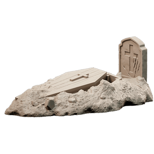 “O Coffin é uma imagem inquietante da profanação que assola Panshaw na Wightpocalypse. Esta miniatura detalhada retrata um caixão de madeira semi-enterrado, com sua tampa deslocada e uma cruz quebrada, revelando o vazio (ou o que restou) em seu interior. Rodeado por terra revolvida e uma lápide danificada, ele é um testemunho silencioso de que a magia vil do Wight tem o poder de arrancar os mortos de seu descanso eterno. Perfeito para ambientar cemitérios assombrados, criptas abandonadas ou para servir como um ponto de origem para os incessantes mortos-vivos que ameaçam os vivos.