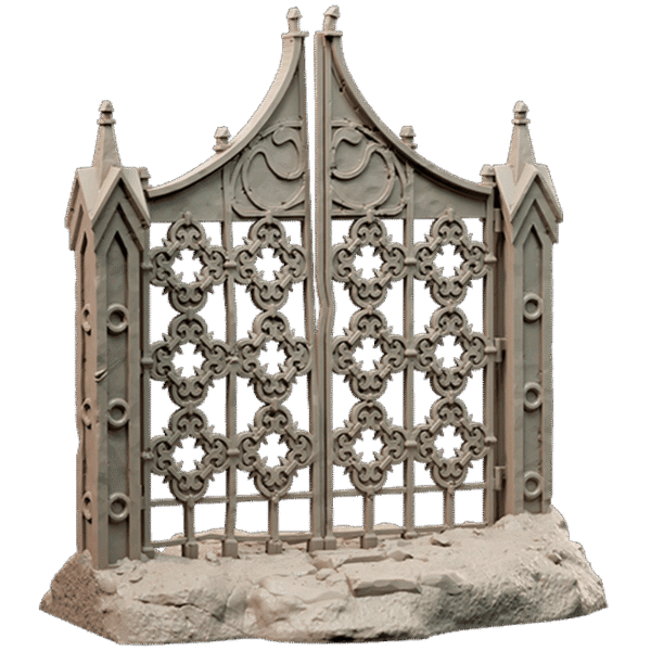 “O Gate é a imponente e aterrorizante entrada para os domínios corrompidos da Wightpocalypse. Esta miniatura detalhada apresenta um grandioso portão duplo, em estilo gótico, adornado com arcos pontiagudos, grades intrincadas e estacas ameaçadoras no topo. Ladeado por pilares robustos que outrora representavam segurança, agora ele é um portal para a desolação, um convite sombrio para o coração da praga morta-viva que assola Panshaw. Perfeito para marcar a entrada de cemitérios profanados, mansões assombradas ou a fronteira de uma cidade caída. O Gate não é apenas uma barreira, mas um arauto visual dos horrores que aguardam aqueles que ousam cruzar seu limiar.