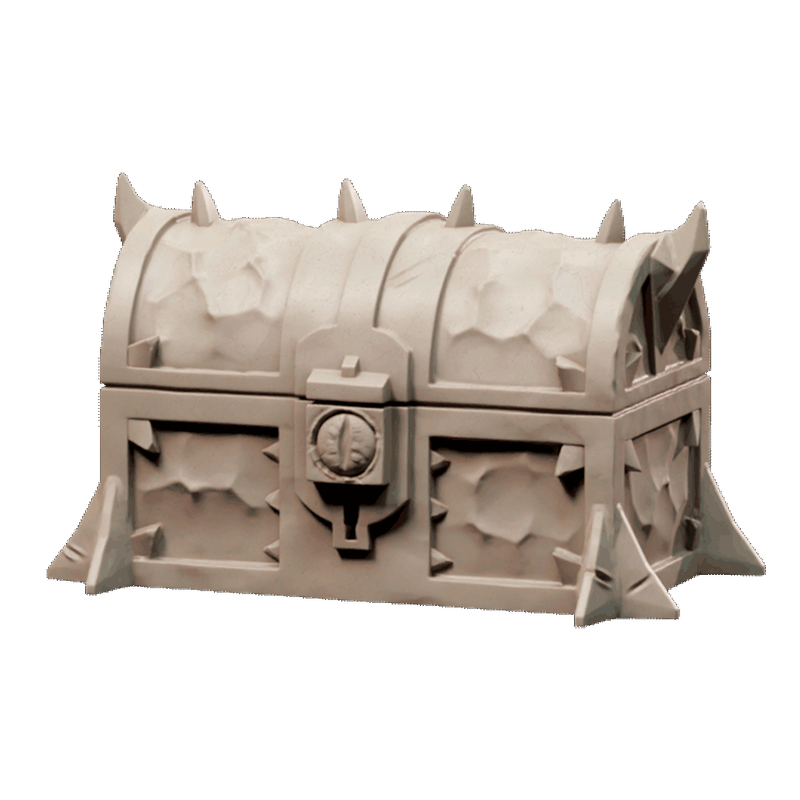 “Um receptáculo de segredos arcanos ou de tesouros pilhados, o Mage Chest é um baú que reflete a estética peculiar e perigosa do Mago Louco. Esta miniatura detalhada apresenta um baú robusto, com sua superfície texturizada e pontas salientes que indicam tanto proteção quanto uma certa malevolência. Um olho estilizado ou um símbolo místico no cadeado sugere que este não é um baú comum, mas sim um objeto de grande importância mágica ou um esconderijo para os resultados mais bizarros dos experimentos do mago. Perfeito para o laboratório, aposentos privados ou masmorras da torre, o Mage Chest adiciona um elemento de mistério e desafio, convidando os aventureiros a desvendar seus conteúdos e desvendar mais sobre a loucura que assola Panshaw.